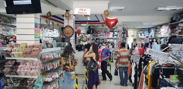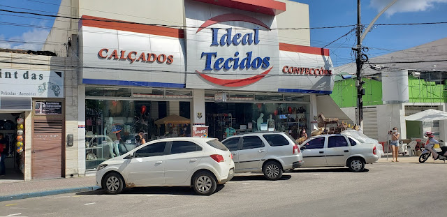Tarde de sexta-feira, 12 de junho de 2020, e aqui na Praça Rio Branco em Jacobina, clicamos a Karina Lima, atendendo na loja Ideal Tecidos - Calçados e Confecções.