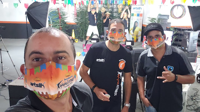 O trio trabalha na transmissão da live da Academia Katatal Fitness. Assista clicando AQUI!