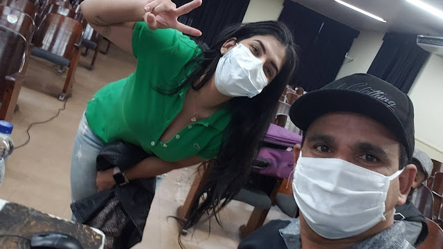 Final da tade de terça-feira, 23 de junho de 2020, e no Centro Cultural em Jacobina, a Juliana Belitardo fez um selfie na companhia da Gabriela Souza.