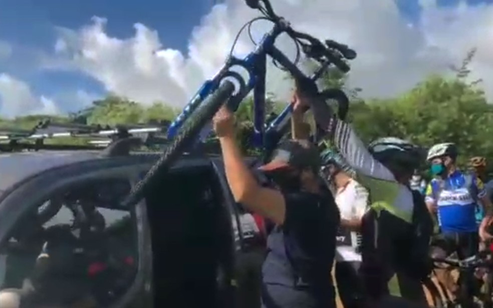 "No meio do caminho furou o pneu de um colega e, quando chegamos no local [da trilha], o pedal de um colega da gente quebrou. Tentamos colocar no lugar mas não conseguimos. Pensamos em ele pegar um motoboy para chegar no vilarejo, mas aí Márcio Vitor falou que não precisava porque ele tiraria o pedal da bicicleta dele e daria ao rapaz para colocar na bicicleta", contou.