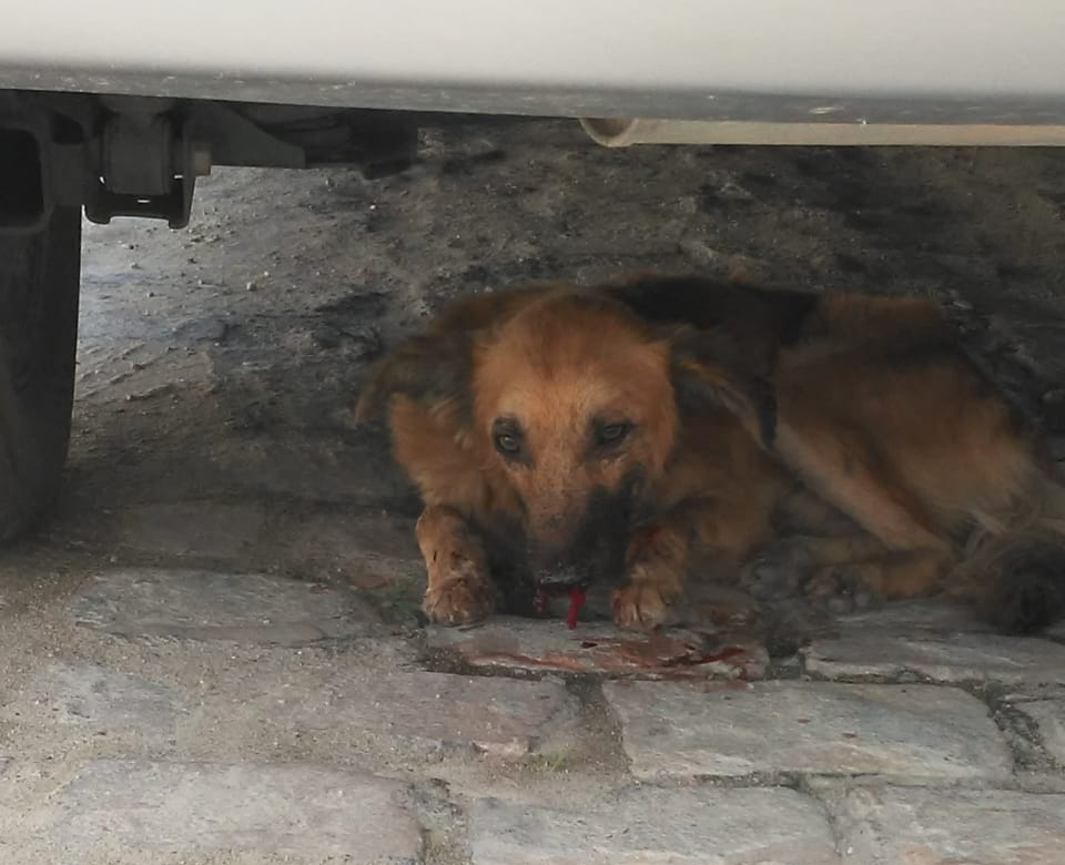 A jovem pede que alguma Ong, ou quem possa ajudar, que resgate o cãozinho, que aparenta ter sido vítima de atropelamento.