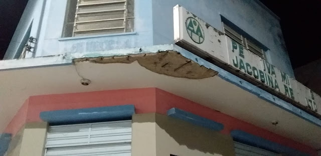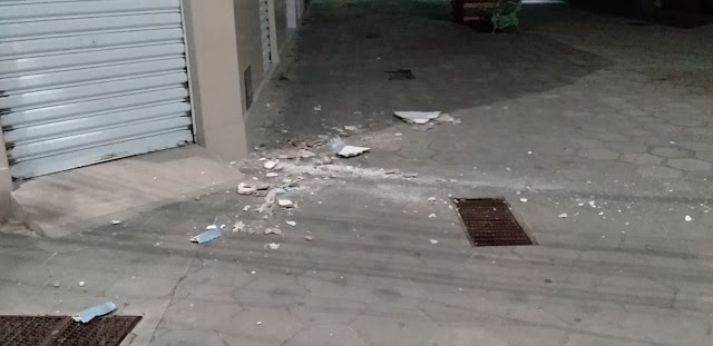 Nesta segunda-feira, 29 de junho de 2020, parte do reboco de uma marquise caiu na esquina do Calçadão com o Calçadinho no centro de Jacobina.