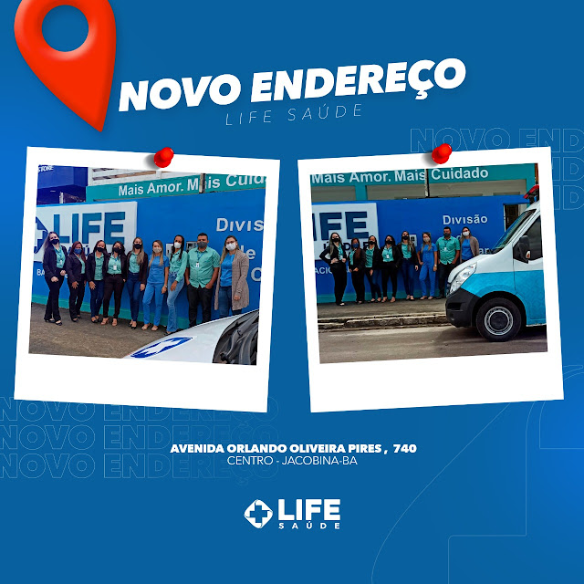 A LIFE SAÚDE comunica para todos os Clientes e Amigos que o escritório da Life Saúde localizado na Praça Rio Branco está em novo endereço localizado na Avenida Orlando Oliveira Pires, nº 740, centro, Jacobina, junto a Base Operacional.