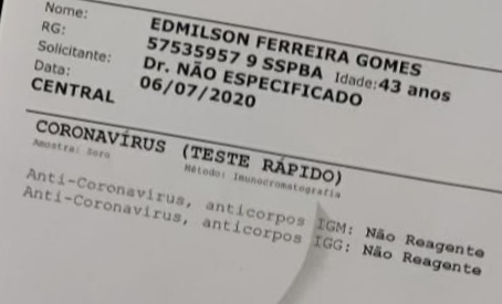 Nesta segunda-feira, 06 de julho de 2020, o empresário Edmílson Gomes e sua esposa, da loja Rei do Celular, fizeram testes de Coronavírus, dando resultados negativos, após serem vítimas de fake news.