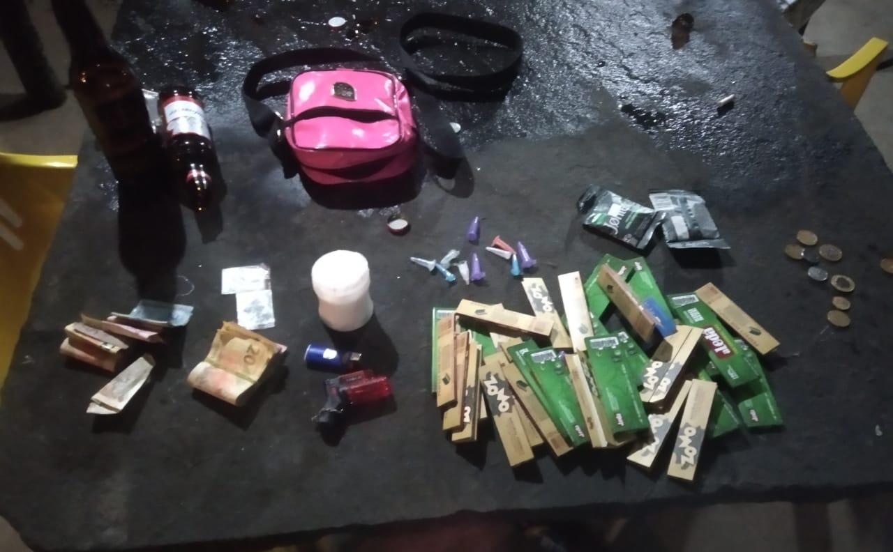 Segundo informações, durante revistas aos presentes que nao utilizaram máscaras de proteção ao Coronavírus, um casal foi preso com certa quantidade de entorpecentes e dinheiro, que estava supostamente sendo comercializada na festa regada com muito álcool e som de paredão.