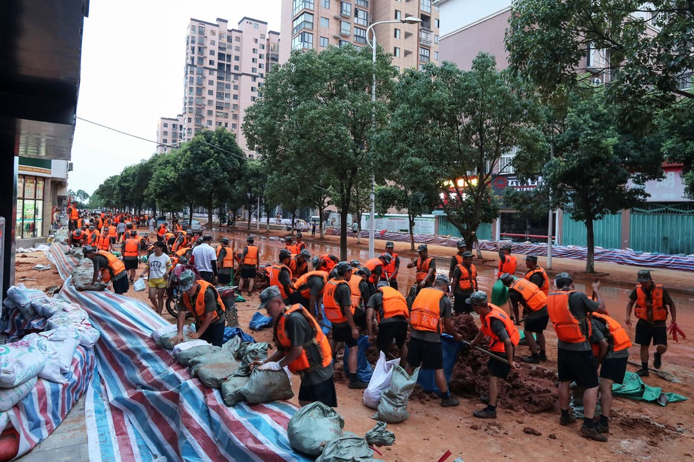 Quase 100 mil pessoas foram mobilizadas para lutar contra as inundações em Jiangxi, entre militares, membros das equipes de emergência e civis.