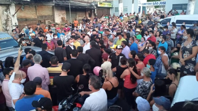 Apesar de ser proibida a realização do velório, para evitar aglomeração de pessoas por conta da pandemia do novo coronavírus, muita gente foi até o local, acompanhando a carreata até o cemitério.