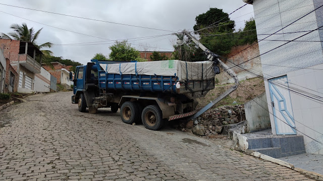 No final da manhã desta sexta-feira, 17 de julho de 2020, i condutor de uma caçamba perdeu o controle da direção, vindo a descer em macha à ré e colidir com um poste da rede de energia elétrica na Rua Antônio Manoel de Mesquita, na subida para o Hotel Serra do Ouro em Jacobina.