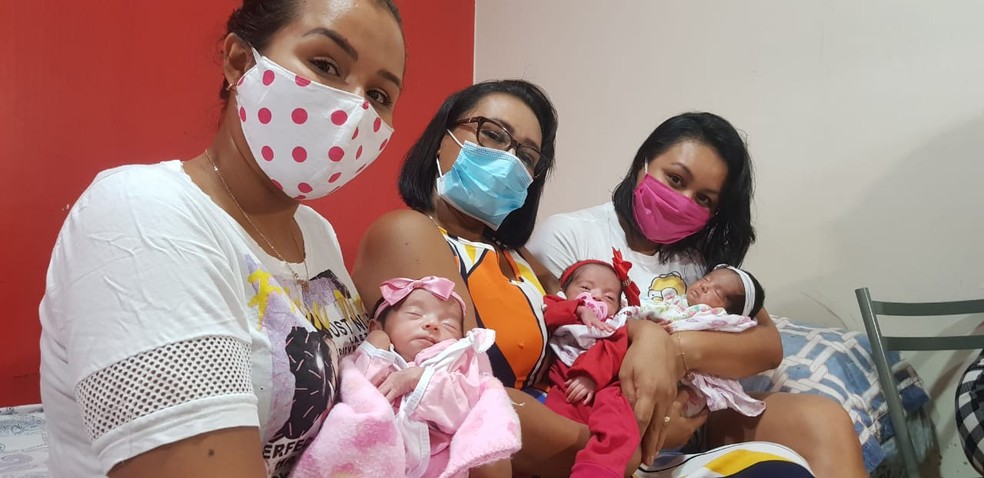 “Eu estava anestesiada, quando a médica falou que tinha mais uma, eu só disse ‘ta bom’, e fui dormindo. No quarto, quando minha filha me falou, eu não acreditava. Eu perguntava ‘quatro, Ana Flávia?’ E ela, ‘quatro, mãe!’”
