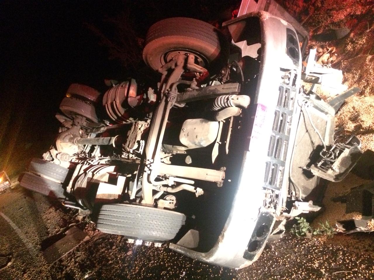 Segundo informações de um caminhoneiro que passou no local, o condutor do veículo que transportava sola veio a óbito no acidente.
