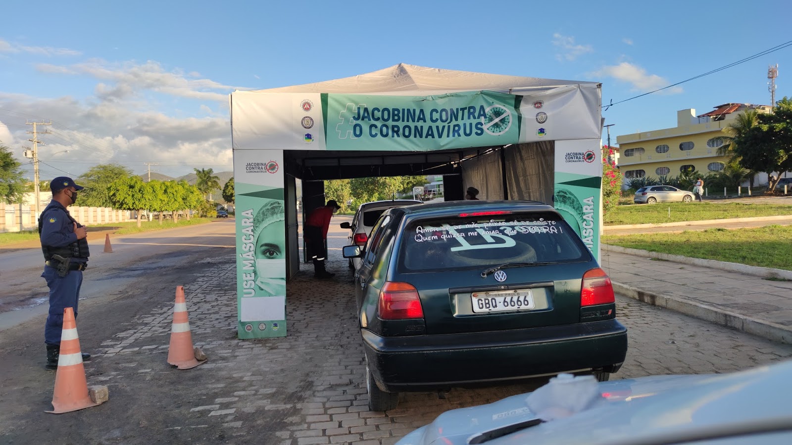 Tarde de sábado, 01 de agosto de 2020, e aqui na Avenida Centenário em Jacobina, estamos passando pela barreira sanitária do Bairro Jacobina II, em combate ao Coronavírus.