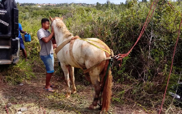 Já o homem, foi retirado pelos bombeiros e encaminhado para hospital do município, por ter sofrido uma fratura. Ele estava consciente no momento do resgate, informou o Corpo de Bombeiros. Primeiro os bombeiros do 19º GBM/Alagoinhas retiraram o homem, em seguida, o cavalo.