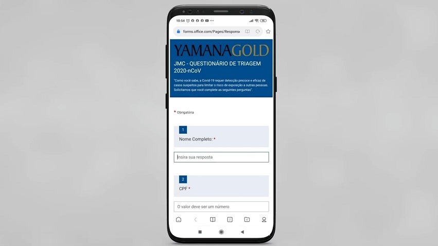 A JMC Yamana Gold, visando ampliar as medidas preventivas, acaba de criar um aplicativo de triagem de saúde com o objetivo de identificar pessoas com sintomas gripais e evitar a contaminação pelo Covid-19. O preenchimento do questionário, que pode ser acessado por meio de um QR Code, é diário e obrigatório e permitirá um controle eficaz na propagação de qualquer vírus dentro da JMC. Os funcionários, próprios e terceiros, poderão responder as perguntas de forma rápida e intuitiva, informando a situação de saúde antes mesmo de sair de casa. Assim, será possível a identificação de funcionários sintomáticos com as devidas orientações e acompanhamento das equipes de saúde, protegendo as equipes, seus familiares e a comunidade jacobinense.