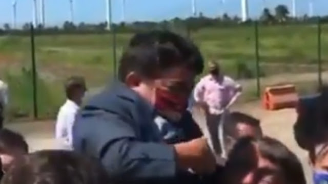 No vídeo, é possível ouvir uma mulher questionando “é uma criança?”. Em seguida, o presidente percebe que é um anão e desce ele dos seus braços.