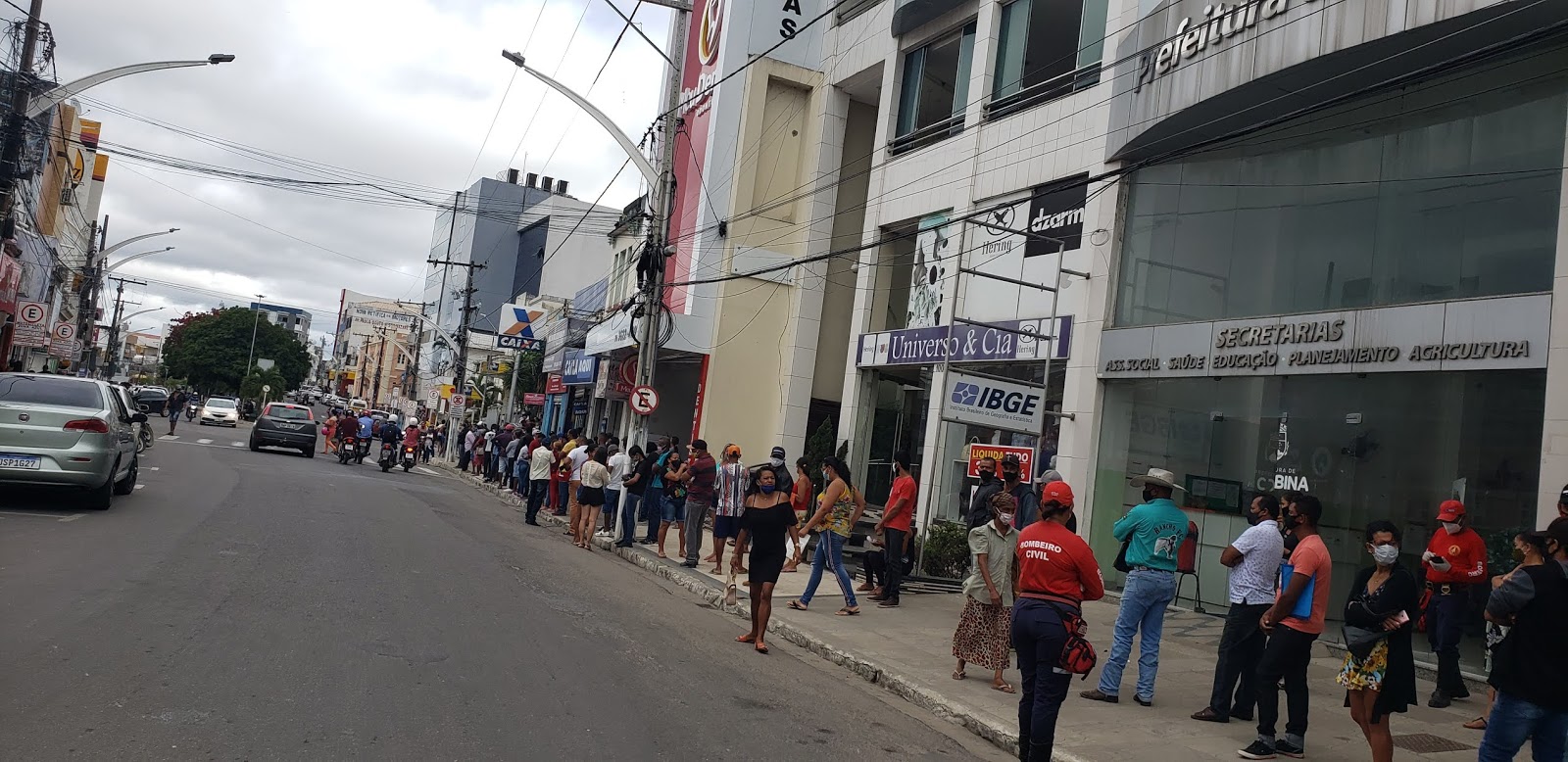 A busca da maioria é pelo saque do auxílio emergencial liberado pelo governo federal para os trabalhadores no período da pandemia do Coronavírus. Bombeiros Civis orientam as pessoas a manterem o distanciamento mínimo.