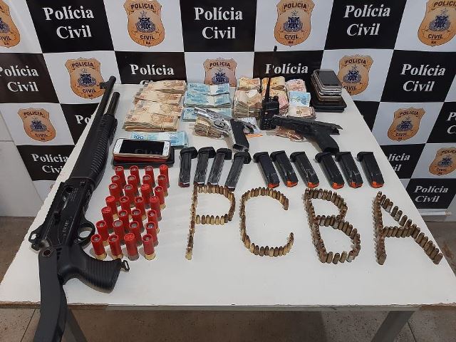 Uma operação deflagrada pela Delegacia de Homicídios (DH/Juazeiro) prendeu três criminosos e apreendeu R$ 78,136 mil, três pistolas, uma espingarda e 187 munições de diferentes calibres, nesta segunda-feira (24).