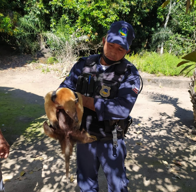 Guarda Municipal resgata Tamanduá Bandeira na Estrada do Boiadeiro em Jacobina