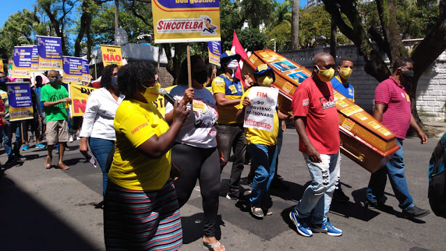 Pela manhã, a categoria realizou uma passeata do Campo Grande até a Praça Castro Alves, em manifestação em defesa da empresa e contra o corte de direitos. O protesto deixou o trânsito lento no Centro. Durante o ato, houve o enterro simbólico do presidente dos Correios, o general Floriano Peixoto.