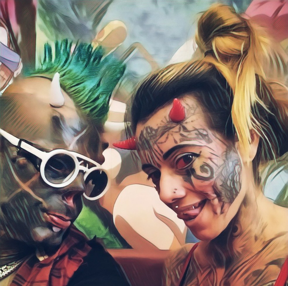 Para Diabão, a vontade de fazer modificações extremas se intensificou há pouco mais de quatro anos e Carol seguiu na onda do marido, logo em seguida. Juntos, eles passaram a se identificar com o novo estilo. “Tem muita coisa que eu puxei dela e ela puxou de mim nisso. Fomos descobrindo isso juntos. Ela veio para esse mundo e se apaixonou por isso também e seguimos tendo várias experiências”, afirma.