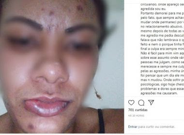 Franciele Azevedo, de 26 anos, agredida pelo ex-namorado em um caso que chamou a atenção no país (ver aqui), falou pela primeira vez sobre o episódio. Em post em uma rede social, a mulher disse que Carlos Samuel Freitas costumava pedir desculpas quando cometia alguma agressão e ainda dizia que não se lembrava do que tinha feito. Azevedo contou que vivia um relacionamento abusivo com várias agressões. Até este sábado (17), o acusado não foi localizado. Ele já é considerado foragido da Justiça após ter a prisão preventiva decretada pela Justiça.
