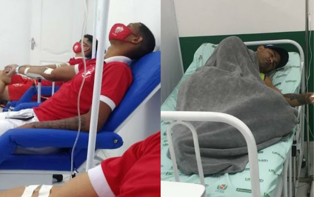O Rio Branco Football Club, do Acre, comunicou na madrugada deste domingo, 17, que a delegação da equipe foi parar na UPA 24 horas de Bragança após 20 dos 24 jogadores apresentarem sintomas de intoxicação alimentar. De acordo com o clube, que vem publicando atualizações do caso em suas redes sociais, os atletas que apresentaram sintomas mais graves foram o goleiro Bruno, condenado pelo assassinato de Eliza Samudio, o meia Guilherme Campana e os zagueiros Wallinson e Paulinho. Nenhum membro da delegação fez qualquer alimentação desde a noite de ontem. Os atletas já se encontram no hotel.