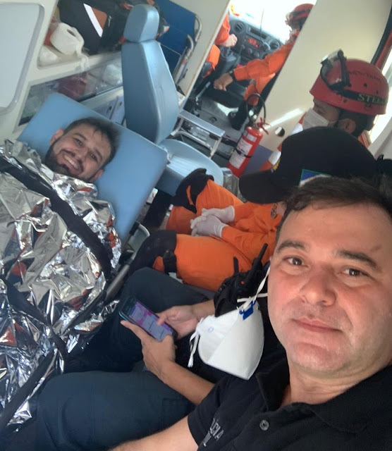 Romano foi transportado ao hospital em uma ambulância dos Bombeiros. Os militares usaram uma manta térmica no atendimento. Uma foto que circula nas redes sociais mostra o jornalista dentro da ambulância, sorrindo em uma selfie com o delegado geral da Polícia Civil, Herbert Amorim.