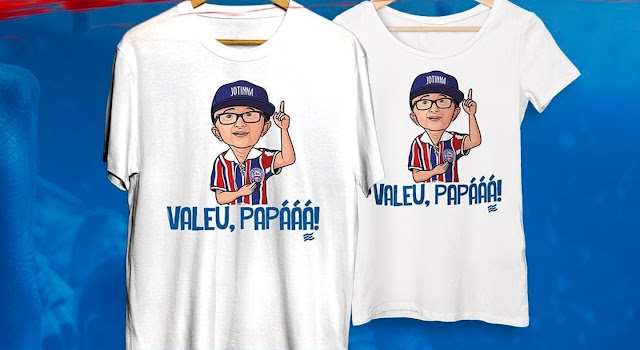 A camisa é toda branca e no meio tem uma caricatura de Jotinha. Logo embaixo do desenho está escrito, o bordão do locutor: "Valeu, Papááá!".