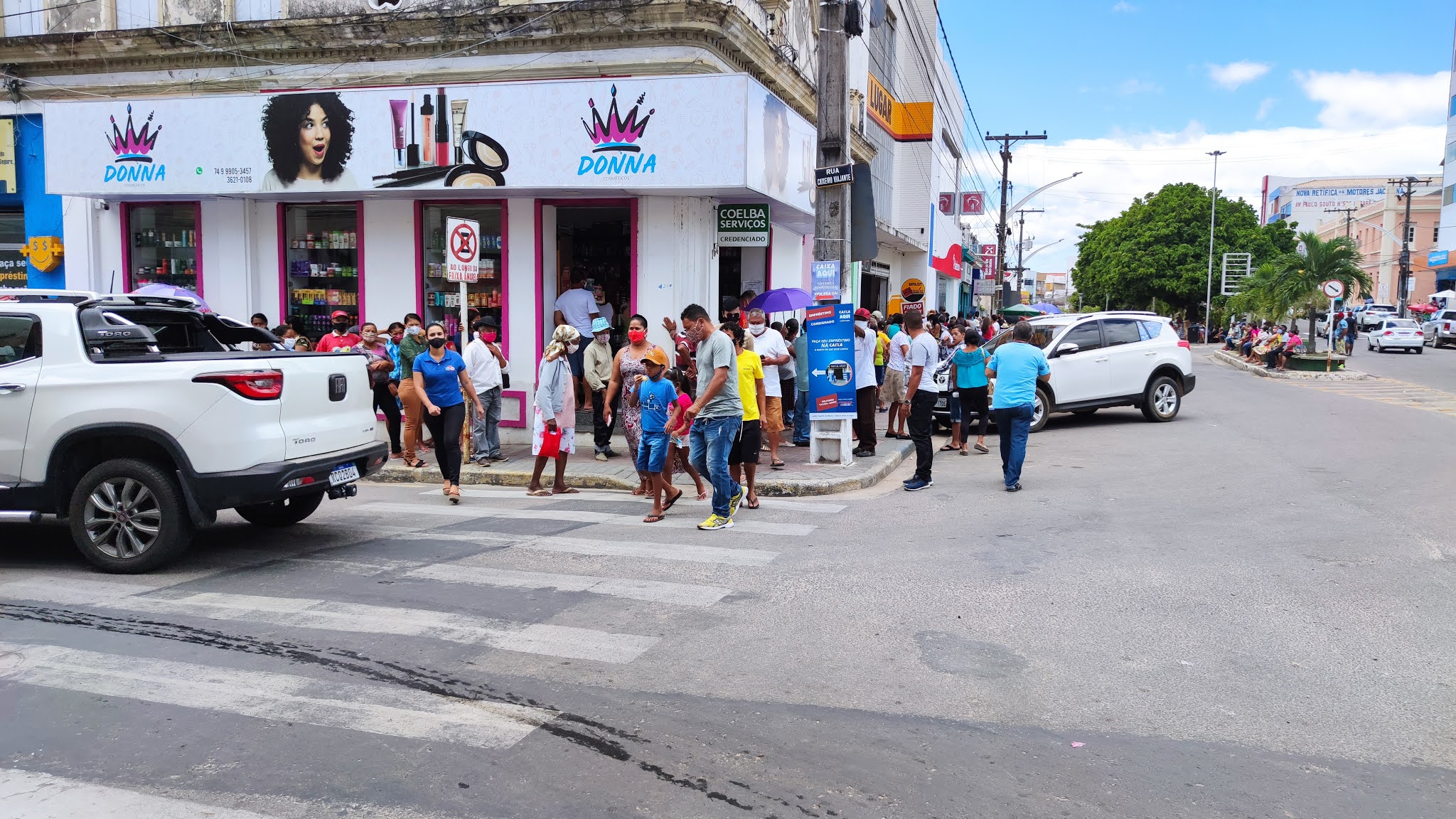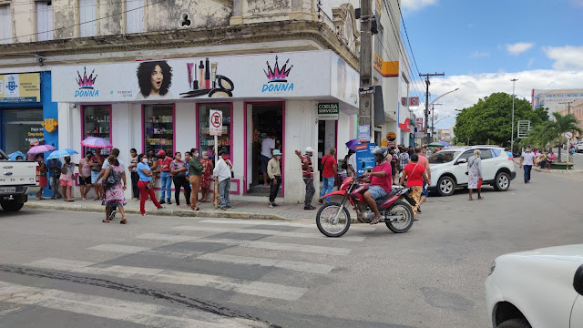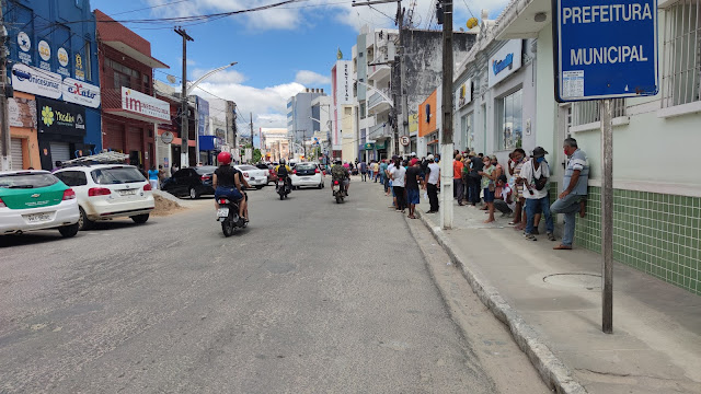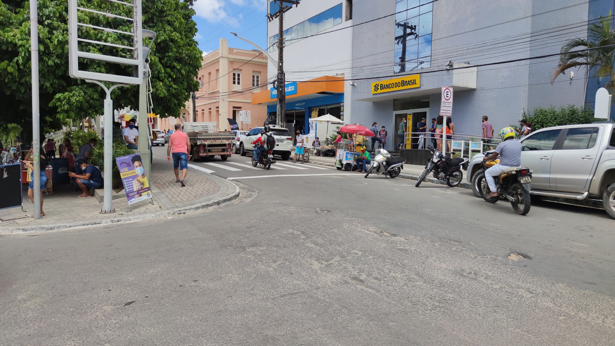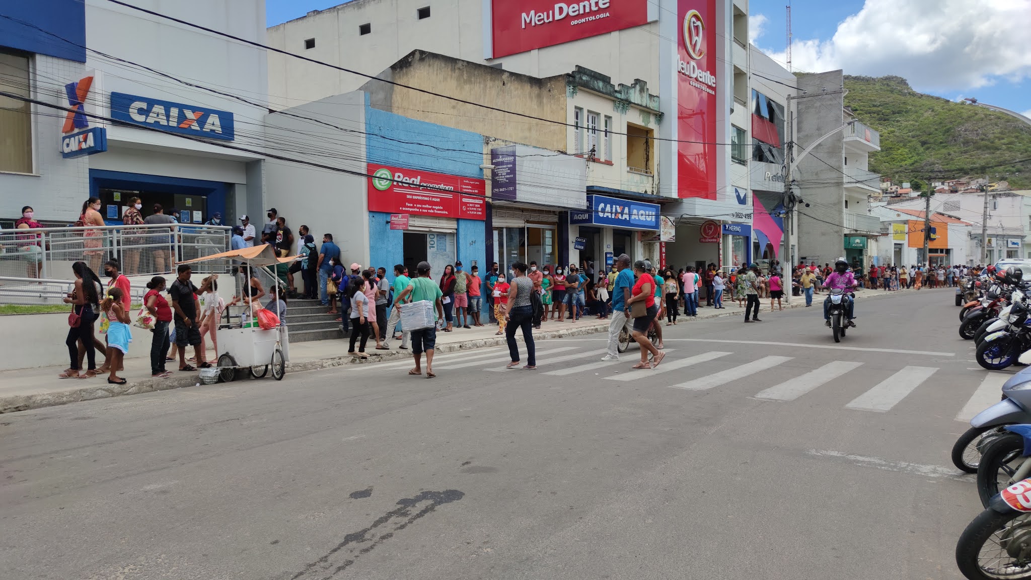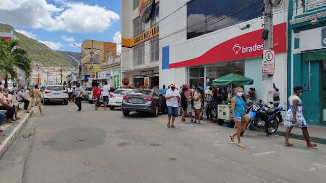 Na manhã desta segunda-feira, 09 de novembro de 2020, centenas de pessoas compadecem as agências bancárias na Rua Senador Pedro Lago no centro de Jacobina.