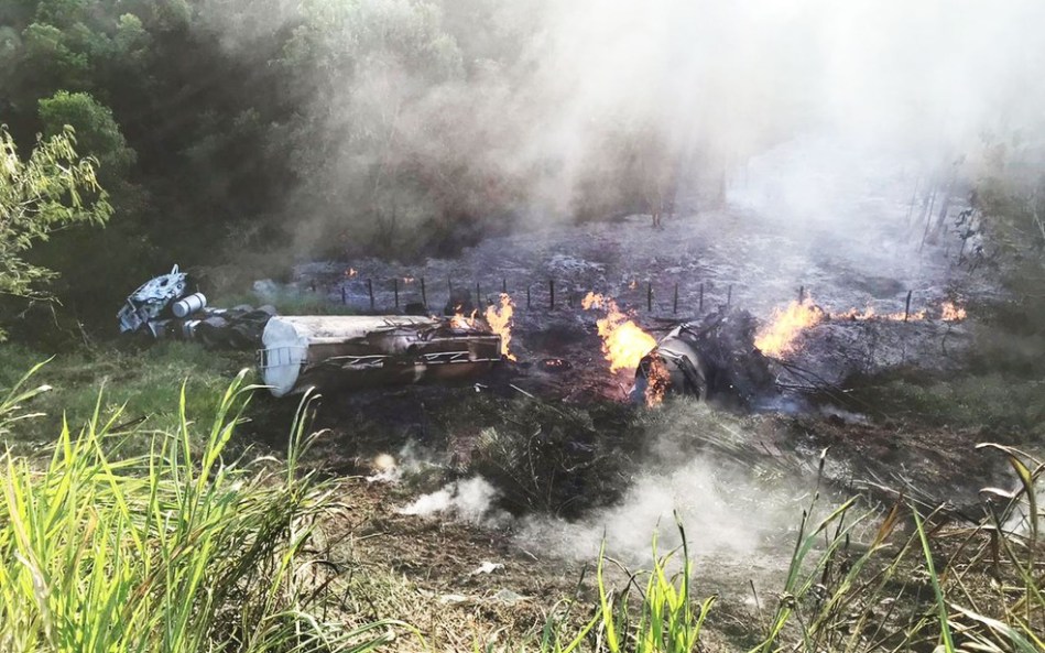 Por causa do impacto da queda, a parte onde estava o combustível acabou pegando fogo e as chamas se espalharam por uma área de vegetação. O Corpo de Bombeiros foi encaminhado ao local para apagar as chamas.