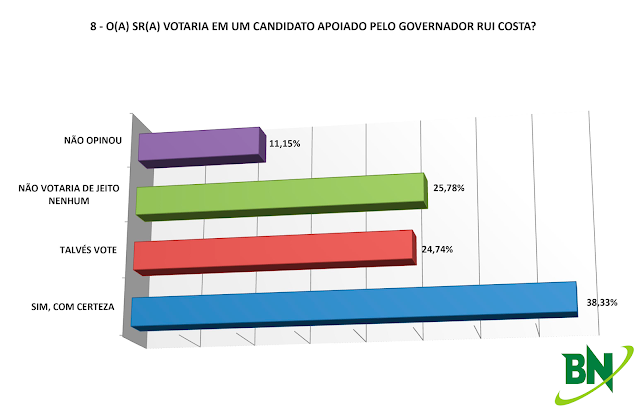A pesquisa BN/ Séculus ainda questionou os eleitores de Saúde se eles votariam em um candidato apoiado pelo governador da Bahia Rui Costa. A resposta da maioria foi que "sim", 38,33% escolheram essa opção. O índice de respostas negativas a pergunta foi de 25,78%. Enquanto 24,74% dissseram que talvez votassem. 11,15% não opinaram.