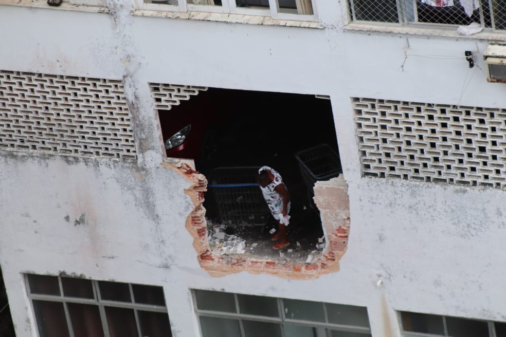 Duas equipes do Corpo de Bombeiros foram encaminhadas ao local para fazer a retirada da vítima de dentro do carro. Um morador de outro prédio vizinho contou que estava em casa quando escutou um barulho alto.