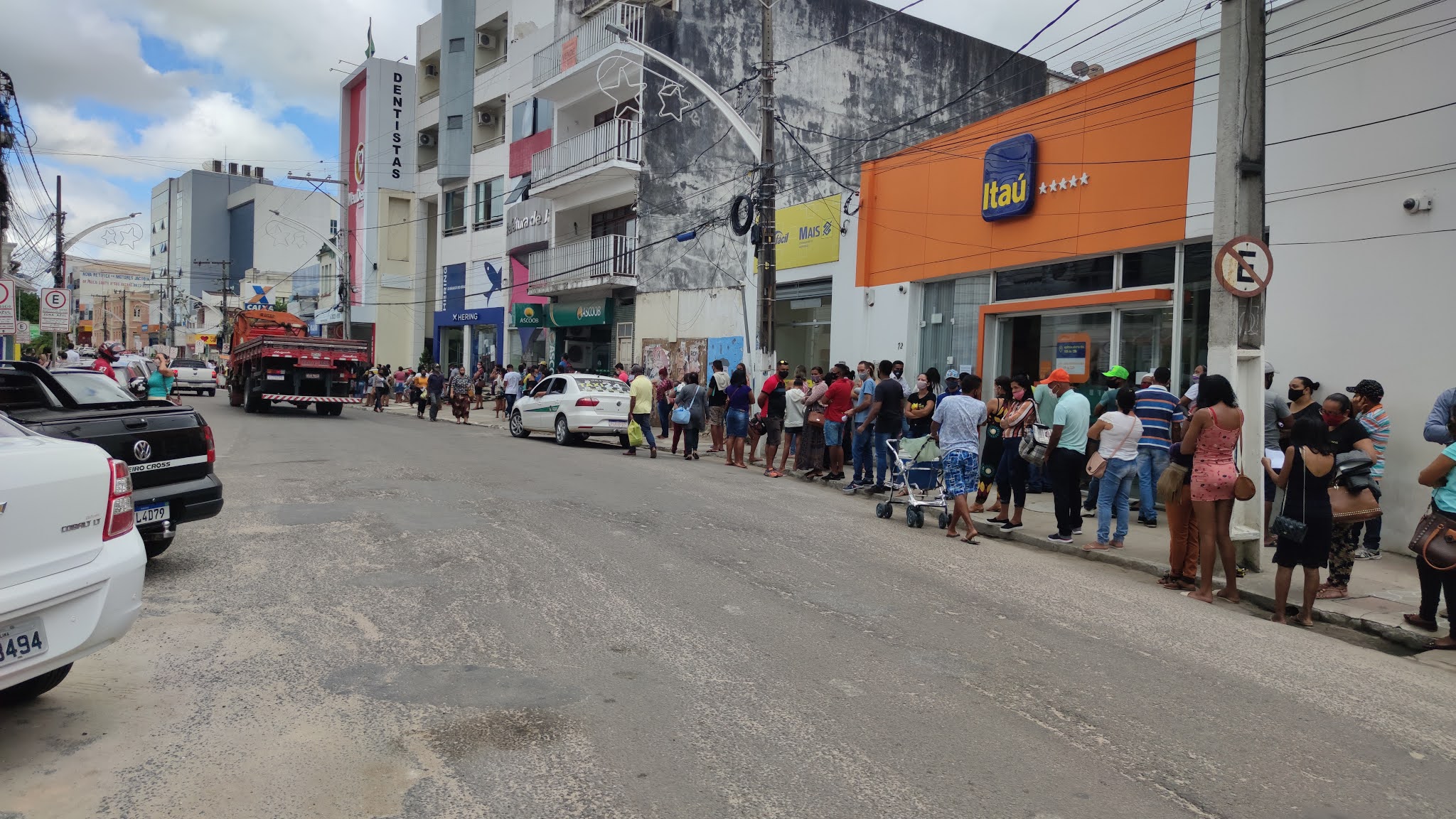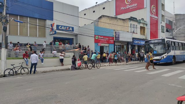 Centenas de pessoas na fila da Caixa Econômica Federal em Jacobina