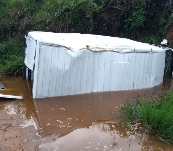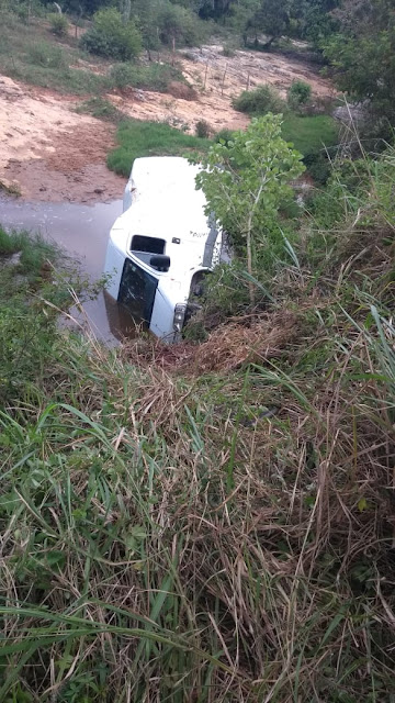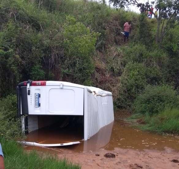 Não há informações sobre as circunstâncias do acidente, ocorrido em um local conhecido como a Curva da Fraizes, ficando o carro com parte submersa pelas águas de um riacho.