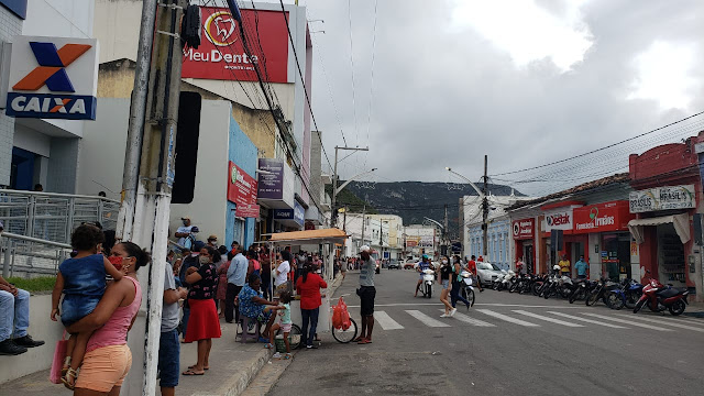 Na Caixa Econômica Federal a situação não é diferente e centenas de pessoas aguardam atendimento para recebimento do auxílio emergencial liberado pelo Governo Federal para os trabalhadores no período da pandemia do Covid-19.