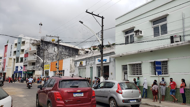 Na manhã desta segunda-feira, 07 de dezembro de 2020, centenas de idosos seguem em uma grande fila para o Banco Bradesco na Rua Senador Pedro Lago no centro de Jacobina.