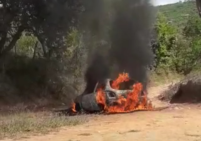 Internauta encontra carro pegando fogo na região da Cachoeira dos Alves em Jacobina