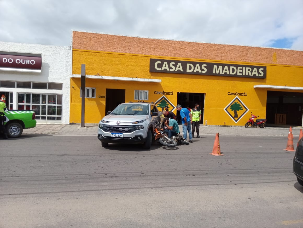 Na manhã desta quinta-feira, 17 de dezembro de 2020, um homem ficou ferido ao colidir a moto que pilotava na lateral de um veículo Fiat Toro na Avenida Orlando Oliveira Pires, altura da Casa das Madeiras no Bairro da Caeira em Jacobina.