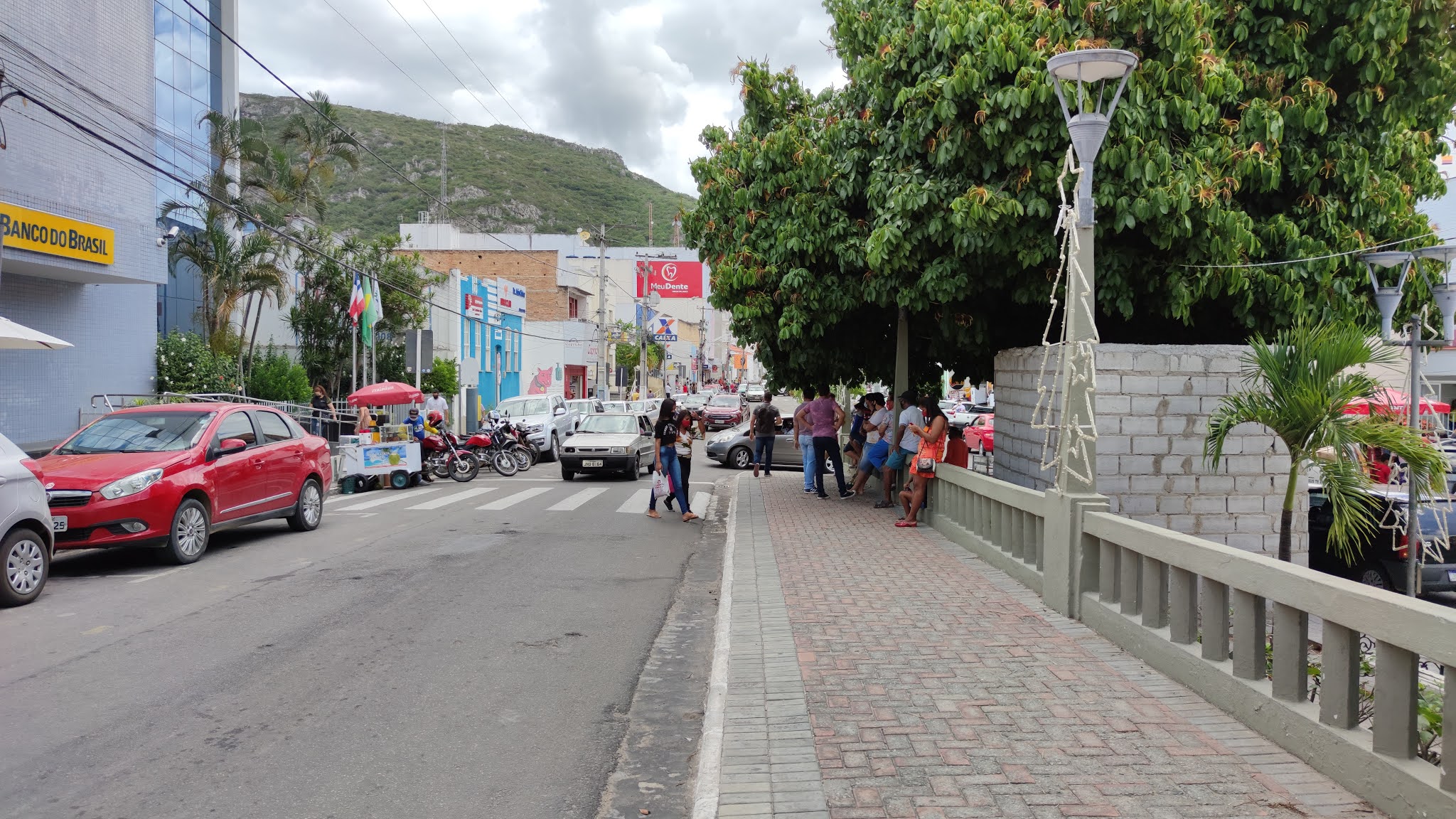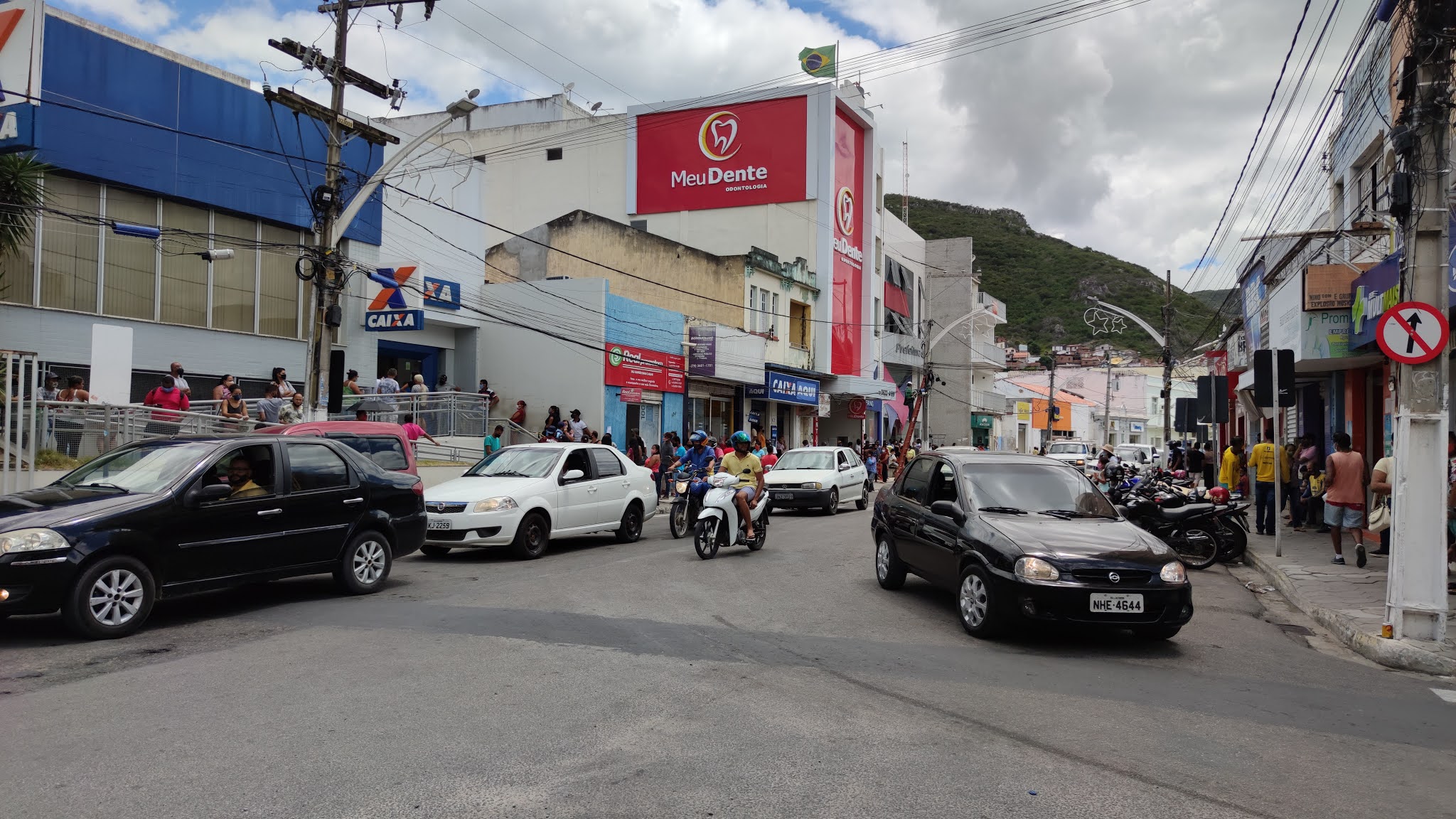 Na manhã desta sexta-feira, 18 de dezembro de 2020, pessoas buscam atendimento na Caixa Econômica na Rua Senador Pedro Lago em Jacobina.
