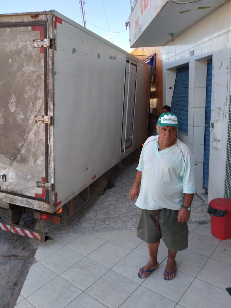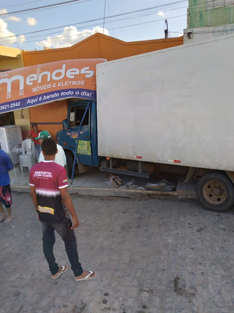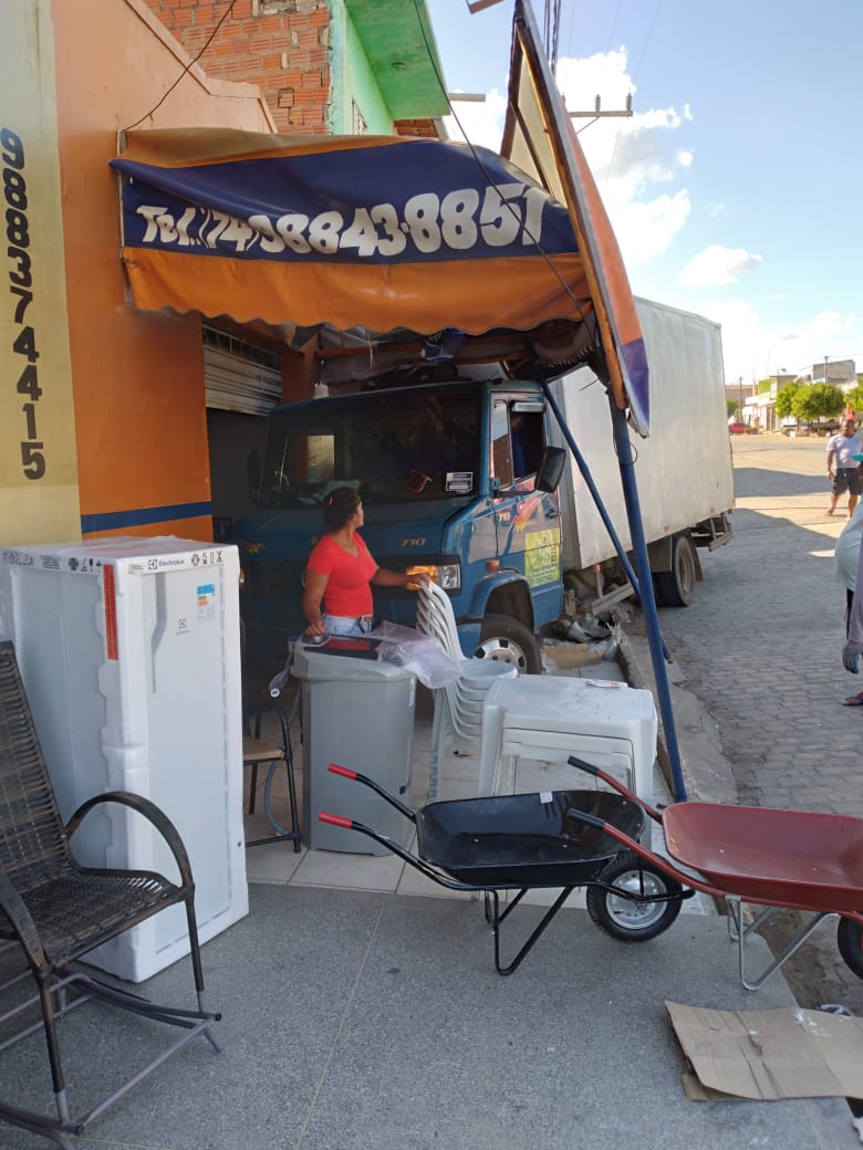 No final da tarde desta quarta-feira, 23 de dezembro de 2020, um caminhão desgovernado atingiu a faxada de uma açougue e da loja Mendes Móveis na Avenida Fernando Daltro em Lages do Batata de Jacobina.