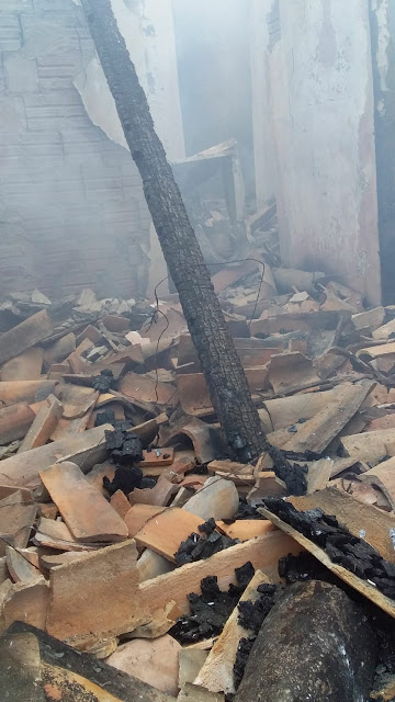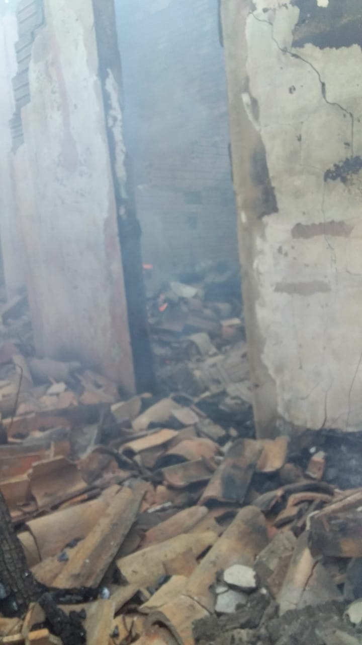 Já nesta madrugada a casa foi incendiada e desabou o telhado, tendo perda total dos móveis guarda roupas, camas, duas geladeiras, TV, fogão e pertences pessoais da família de dona Vilma que morava há 10 anos na casa e relata que nunca teve problemas com vizinhos.