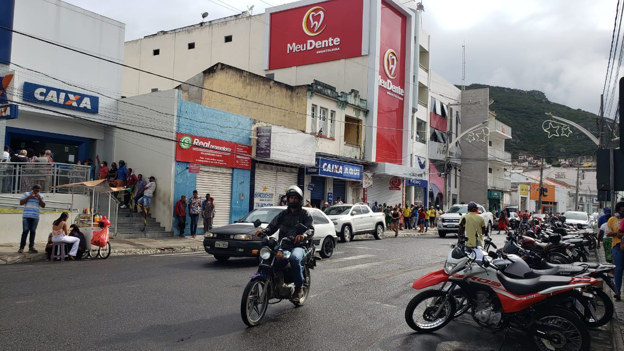 Centenas de pessoas seguem para sacar o auxílio emergencial na Caixa em Jacobina
