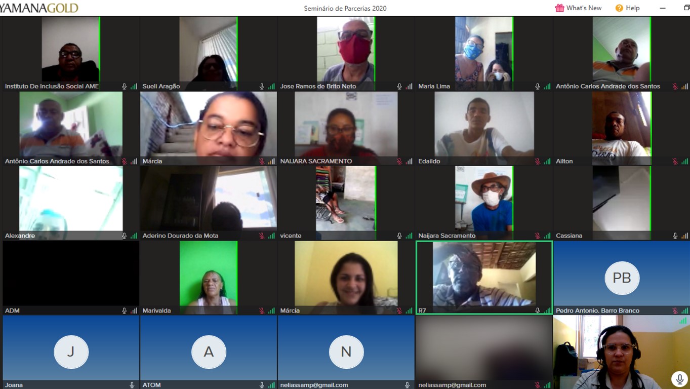O Instituto Yamana de Desenvolvimento Socioambiental, responsável pela gestão e desenvolvimento de programas de responsabilidade socioambiental da Yamana Gold, promoveu na última quarta-feira, dia 30, a apresentação e votação final dos projetos do Seminário de Parcerias com verba superior a 100 mil. Devido à pandemia, toda a programação ocorreu de maneira virtual.