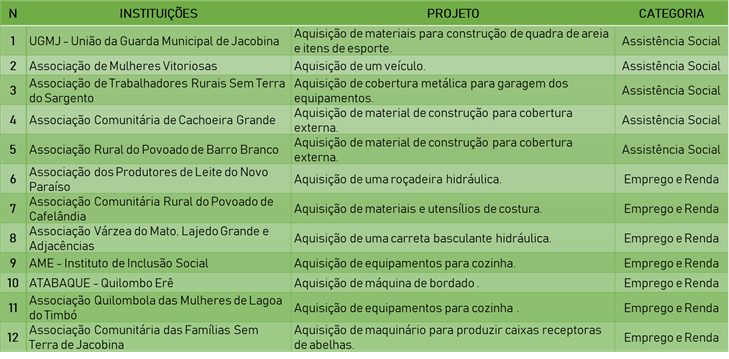 Realizado há 12 anos em Jacobina, o Seminário de Parcerias já beneficiou mais 170 projetos. Em 2020, participaram 17 instituições, sendo que 12 foram contempladas, 7 na categoria de iniciativas para geração de emprego e renda, e 5 na categoria de Assistência Social. A expectativa é de que mais de 1.200 pessoas sejam beneficiadas diretamente este ano.