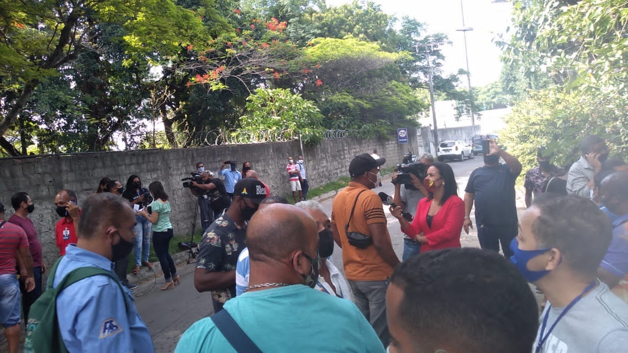 A Polícia Militar encontra-se no local e a imprensa falada e escrita compareceu para ouvir as reivindicações da categoria.