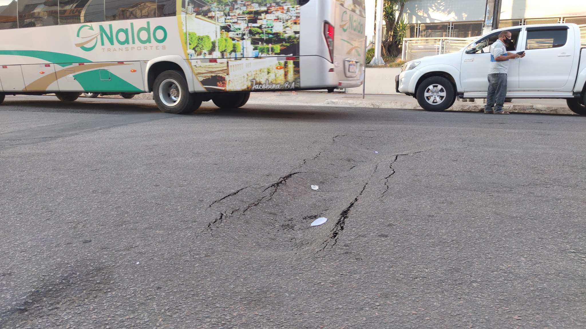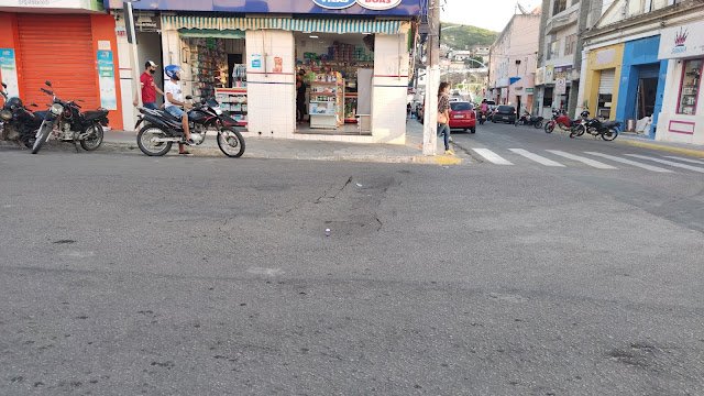 No final da tarde desta sexta-feira, 29 de janeiro de 2021, o piso, o asfalto cedeu no meio da Rua Senador Pedro Lago em Jacobina.