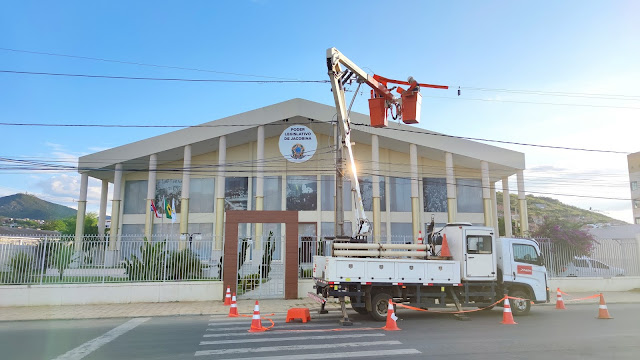 No final da tarde desta segunda-feira, 01 de fevereiro de 2021, prepostos da Dínamo, que presta serviços para a Coelba seguem realizando manutenção em uma rede de alta tensão na Avenida João Fraga Brandão em Jacobina.