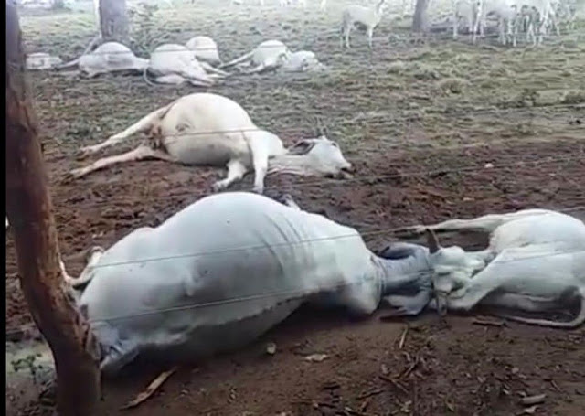 Um raio atingiu a zona rural da cidade de Baianópolis, no oeste da Bahia, e matou 14 cabeças de gado. O caso aconteceu na Fazenda Melancia e o proprietário estima que o prejuízo é de cerca de R$ 40 mil.