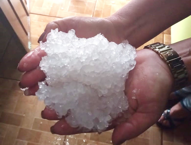 Na tarde deste domingo, 07 de fevereiro de 2021, uma chuva de granizo caiu sobre o povoado de Mônica, pertencente ao município de Morro do Chapéu, na Chapada Diamantina-BA.