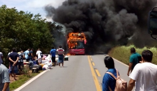 Um ônibus interestadual que saiu de São Paulo com destino ao Ceará pegou fogo e ficou destruído na manhã desta sexta-feira (12), na BR-135, altura da cidade de Riachão das Neves, no oeste da Bahia.