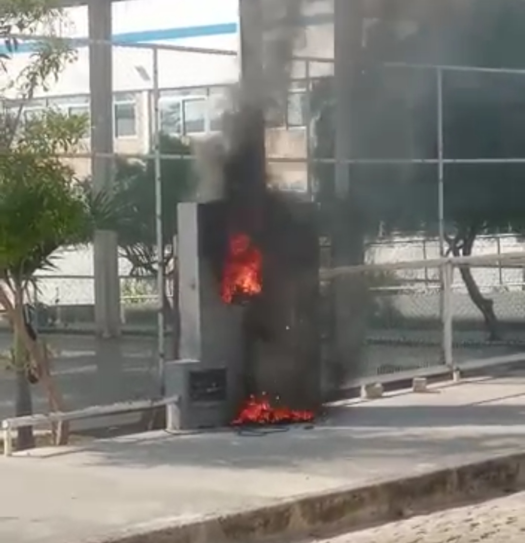 Segundo informações, houve uma descarrega atmosférica que desprotegeu o aterramento, causando o fogo e deixando o espaço sem energia.